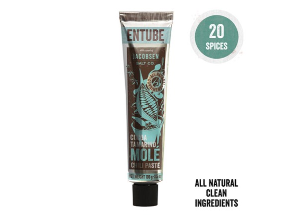 Entube's Cocoa Tamarind Molé was inspired by the exotic fragrances and vibrant colors of local markets in Oaxaca that make this region a 'must go' destination for all serious foodies. Molé – from the ancient Nahuatl word sauce, mōlli – is prepared throughout México in an endless array of colors and flavors. When molé recipes were originally developed in the early 19th century, the mixture of North American, European, and African ingredients made it México's first truly global dish.